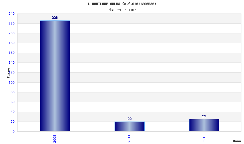 | Anno | Firme | Importi | Media | Naz. | Reg. | Prov. | Comu. |