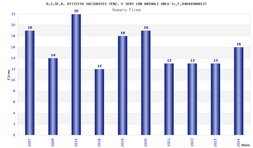 | Anno | Firme | Importi | Media | Naz. | Reg. | Prov. | Comu. |