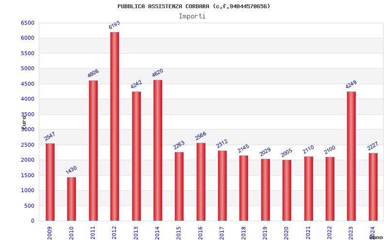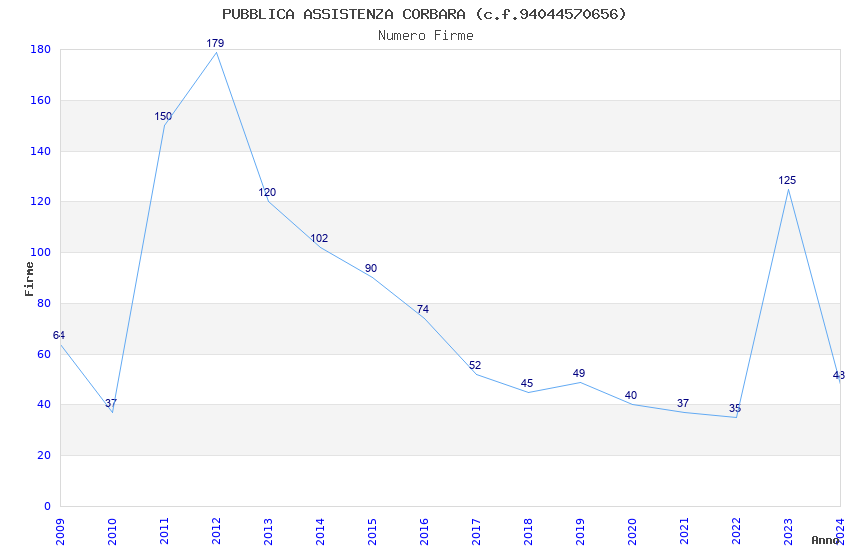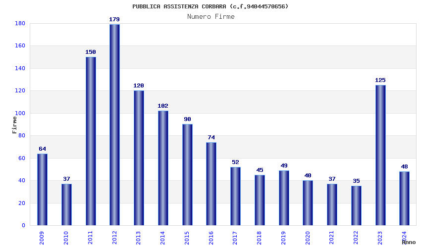 | Anno | Firme | Importi | Media | Naz. | Reg. | Prov. | Comu. |