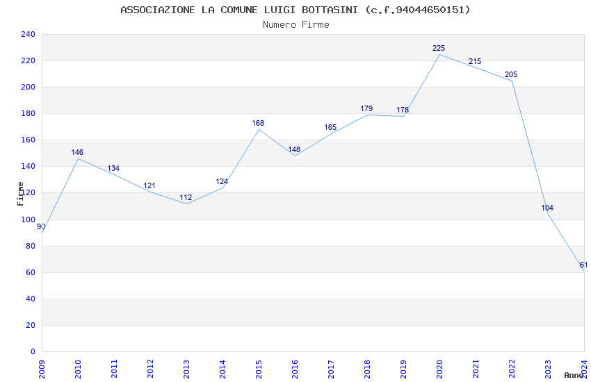 | 2024 | 61 | 2.242,15 | 36,76 | 22.059 | 4.698 | 1.698 | 8 |