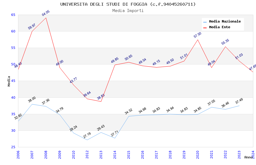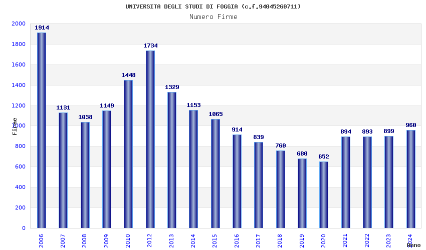 | Anno | Firme | Importi | Media | Naz. | Reg. | Prov. | Comu. |