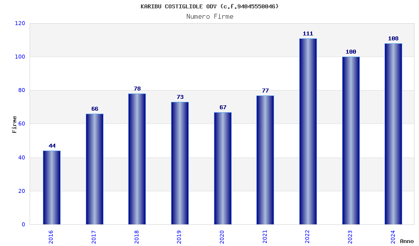 | 2024 | 108 | 2.513,61 | 23,27 | 20.171 | 1.447 | 221 | 2 |