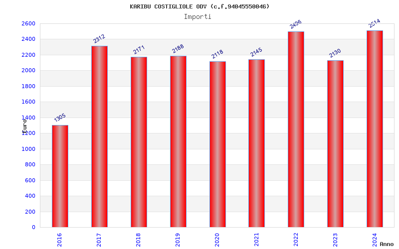 | Anno | Firme | Importi | Media | Naz. | Reg. | Prov. | Comu. |