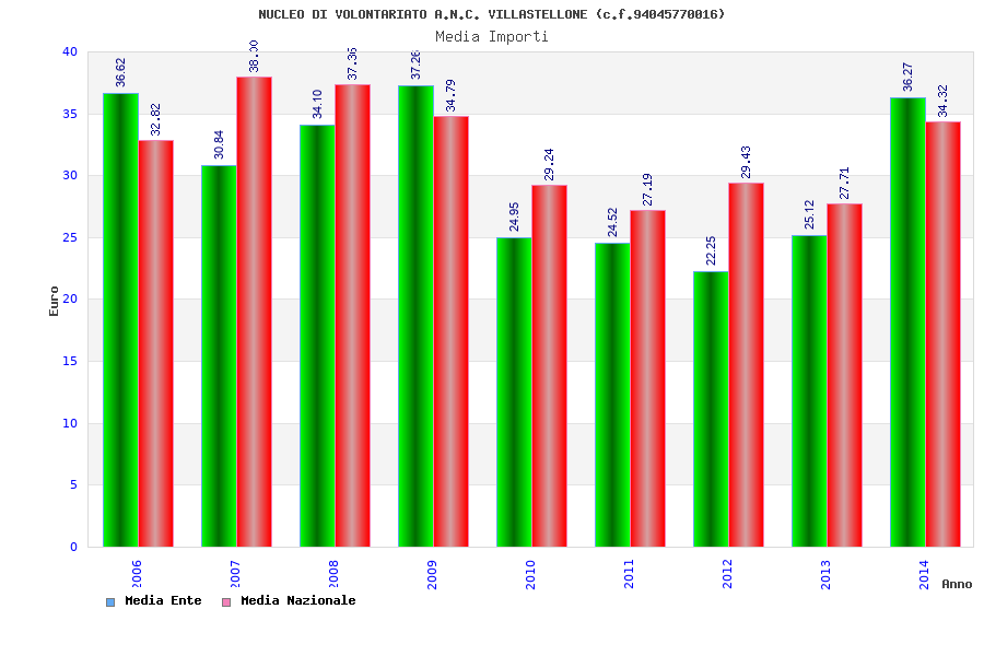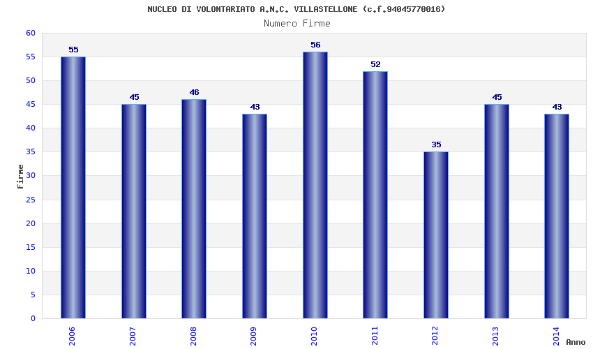 | Anno | Firme | Importi | Media | Naz. | Reg. | Prov. | Comu. |