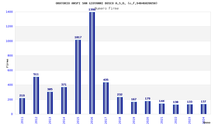 | 2024 | 137 | 3.249,01 | 23,72 | 16.232 | 1.077 | 218 | 10 |