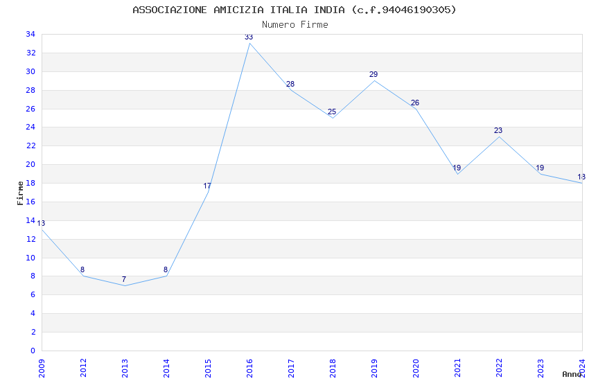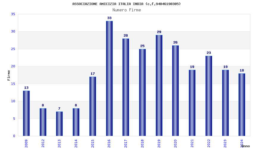 | Anno | Firme | Importi | Media | Naz. | Reg. | Prov. | Comu. |