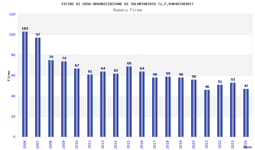 Anno Firme Importi Media Naz. Reg. Prov. Comu.