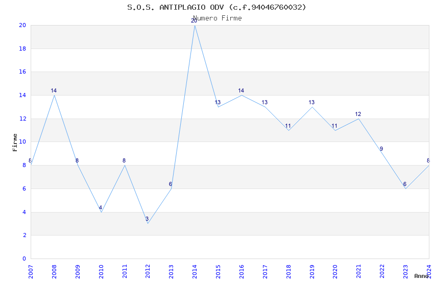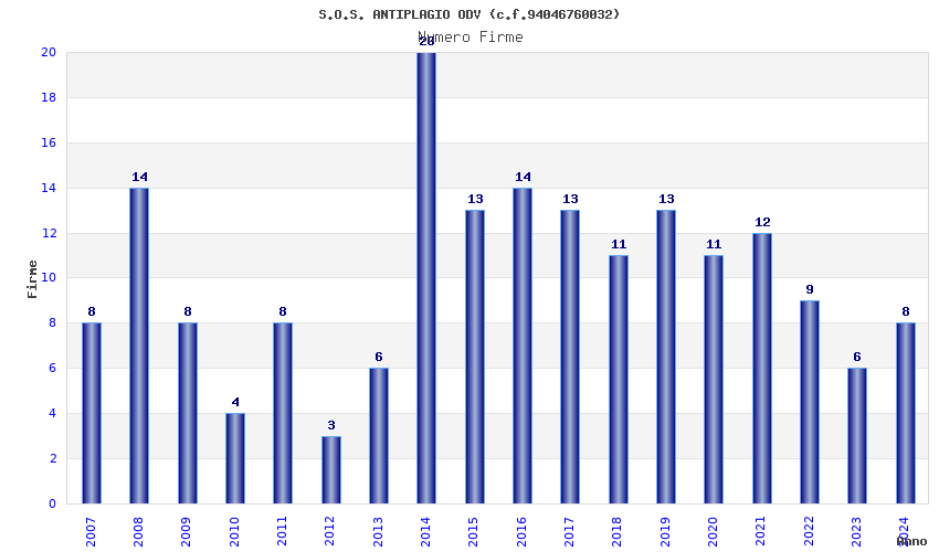 | 2014 | 20 | 649,65 | 32,48 | 36.011 | 3.183 | 277 | 105 |