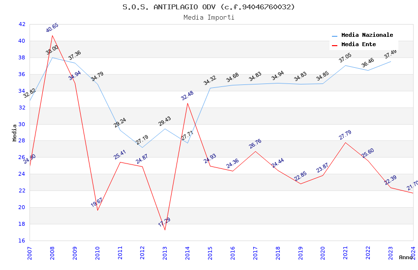 | Anno | Firme | Importi | Media | Naz. | Reg. | Prov. | Comu. |