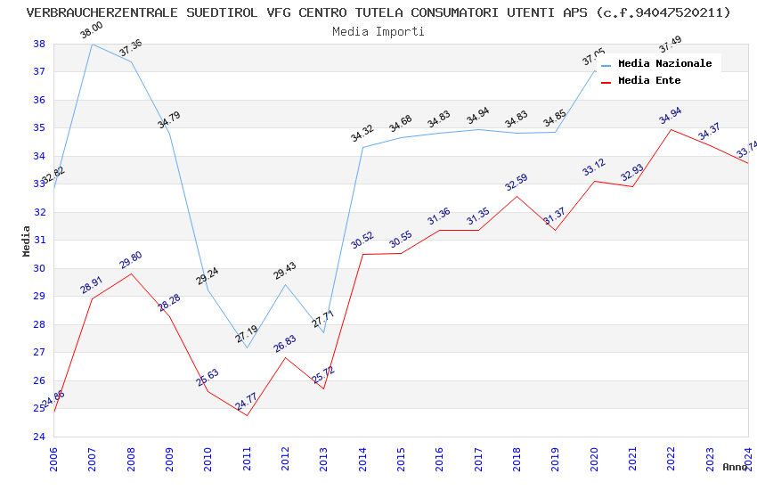 | Anno | Firme | Importi | Media | Naz. | Reg. | Prov. | Comu. |