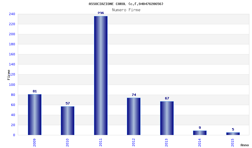 | Anno | Firme | Importi | Media | Naz. | Reg. | Prov. | Comu. |