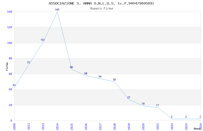 | 2014 | 140 | 3.630,74 | 25,93 | 14.342 | 1.573 | 1.360 | 9 |