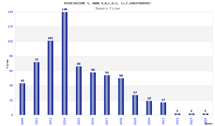 | Anno | Firme | Importi | Media | Naz. | Reg. | Prov. | Comu. |