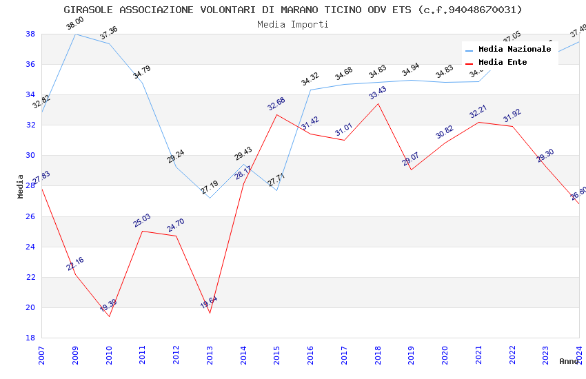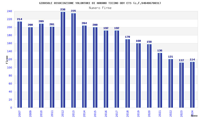| Anno | Firme | Importi | Media | Naz. | Reg. | Prov. | Comu. |