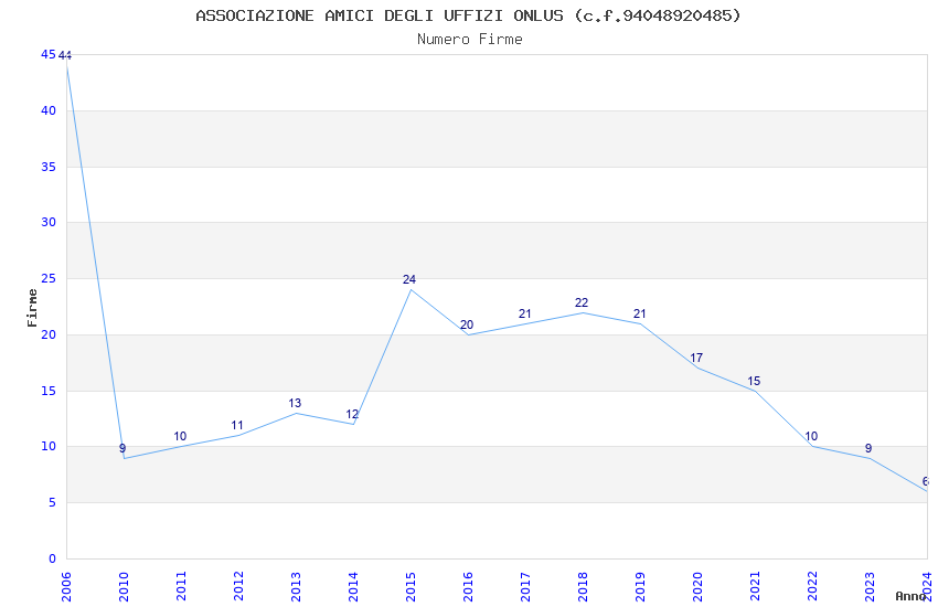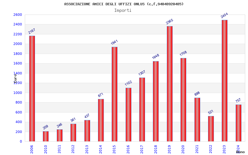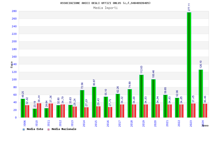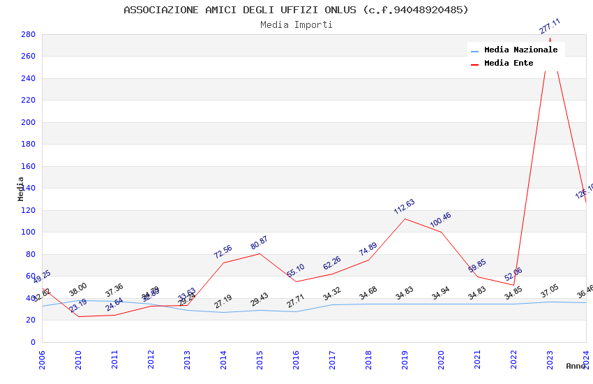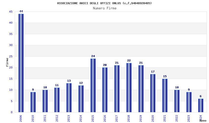 | Anno | Firme | Importi | Media | Naz. | Reg. | Prov. | Comu. |