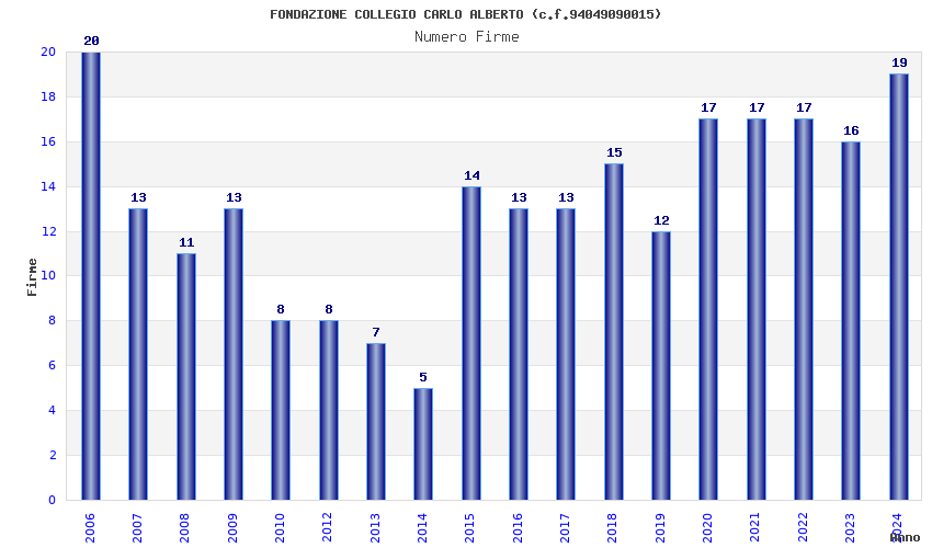 | Anno | Firme | Importi | Media | Naz. | Reg. | Prov. | Comu. |
