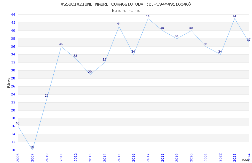 | 2017 | 43 | 2.124,85 | 49,42 | 22.560 | 320 | 252 | 86 |