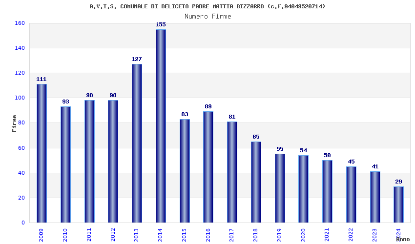 | 2014 | 155 | 2.587,50 | 16,69 | 18.447 | 874 | 166 | 1 |