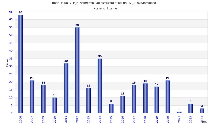 | Anno | Firme | Importi | Media | Naz. | Reg. | Prov. | Comu. |