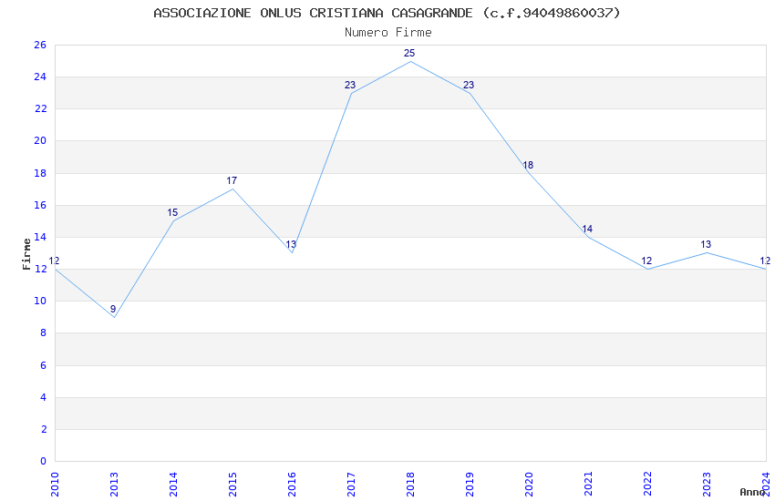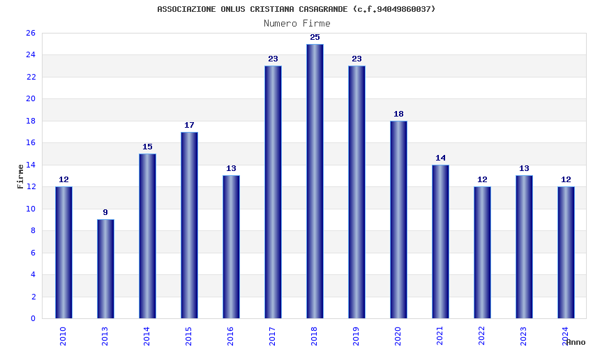 | Anno | Firme | Importi | Media | Naz. | Reg. | Prov. | Comu. |