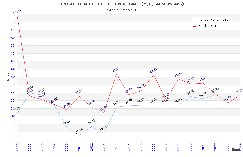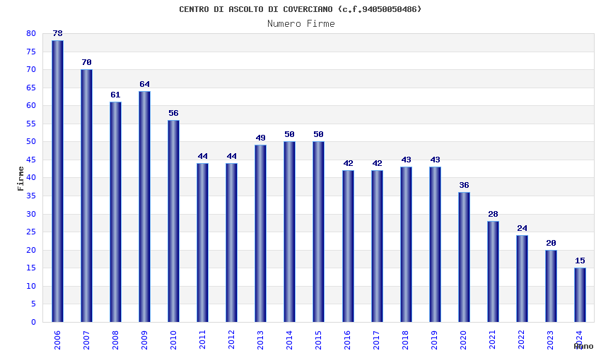 | Anno | Firme | Importi | Media | Naz. | Reg. | Prov. | Comu. |
