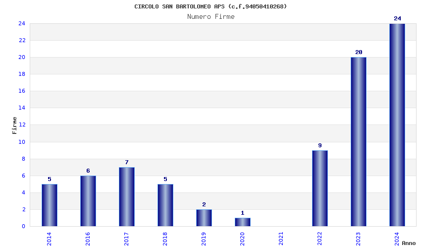 | Anno | Firme | Importi | Media | Naz. | Reg. | Prov. | Comu. |