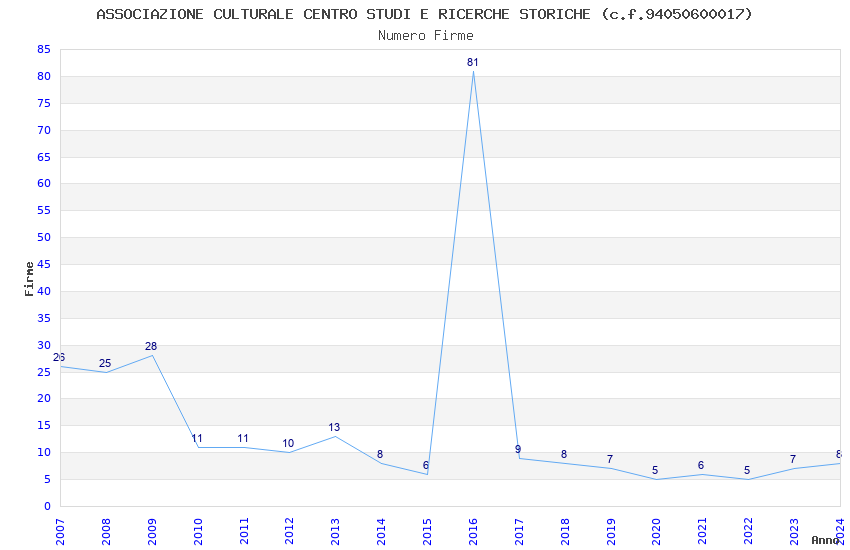 | 2016 | 81 | 2.023,17 | 24,98 | 22.591 | 1.802 | 926 | 12 |