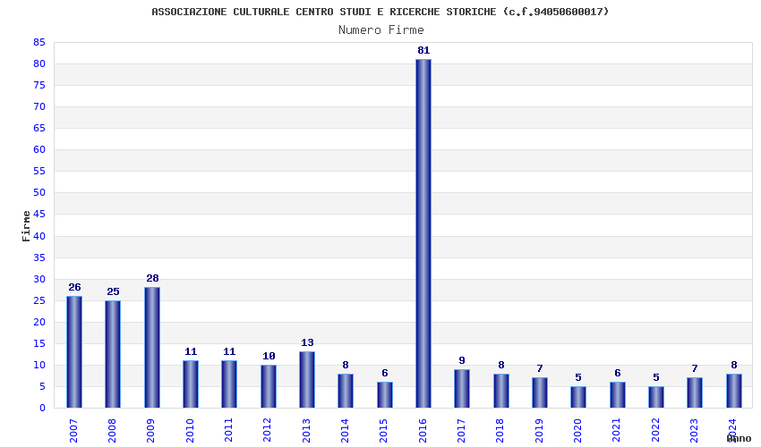 | Anno | Firme | Importi | Media | Naz. | Reg. | Prov. | Comu. |