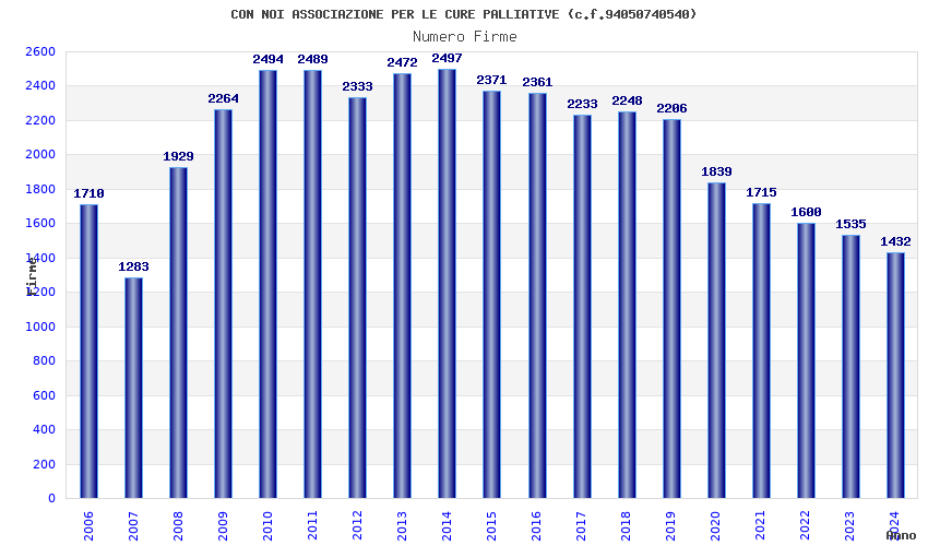 | Anno | Firme | Importi | Media | Naz. | Reg. | Prov. | Comu. |