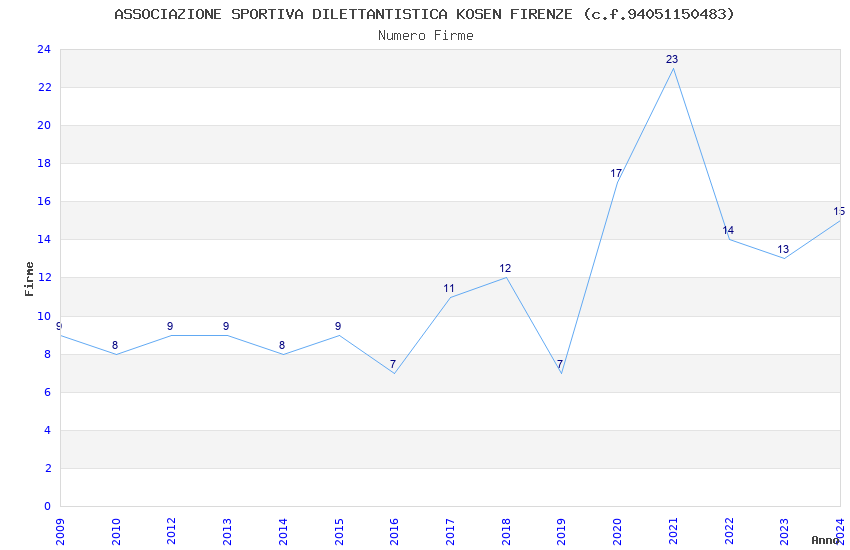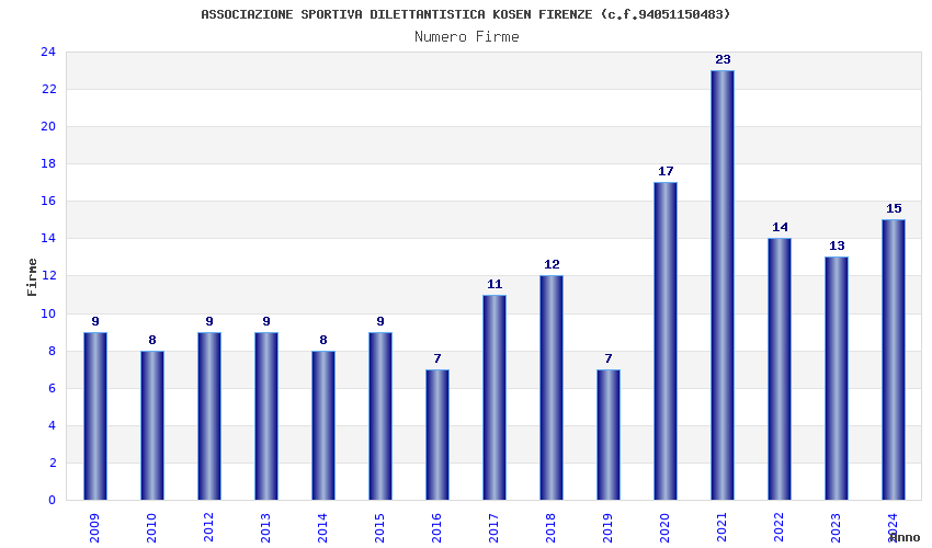 | 2021 | 23 | 1.338,95 | 58,22 | 30.955 | 1.922 | 612 | 324 |
