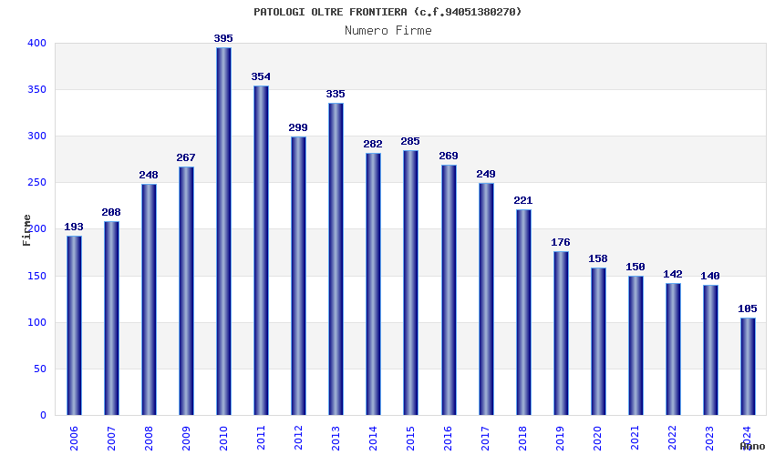 | Anno | Firme | Importi | Media | Naz. | Reg. | Prov. | Comu. |