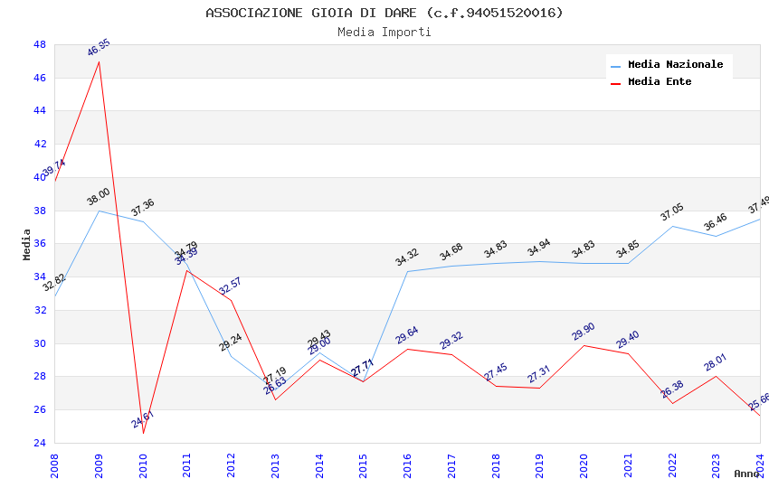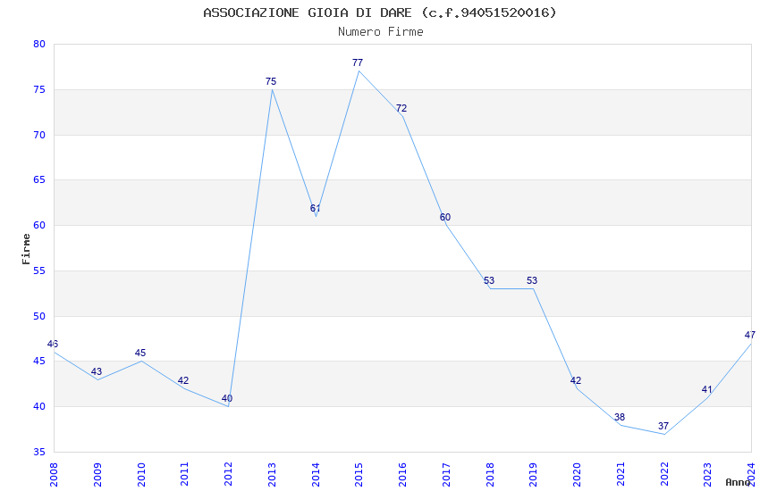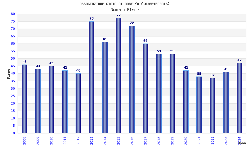 | Anno | Firme | Importi | Media | Naz. | Reg. | Prov. | Comu. |