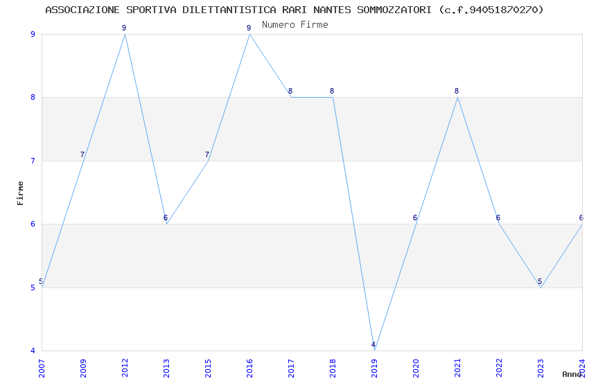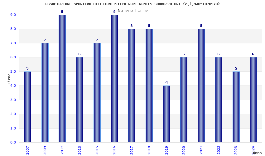 | Anno | Firme | Importi | Media | Naz. | Reg. | Prov. | Comu. |