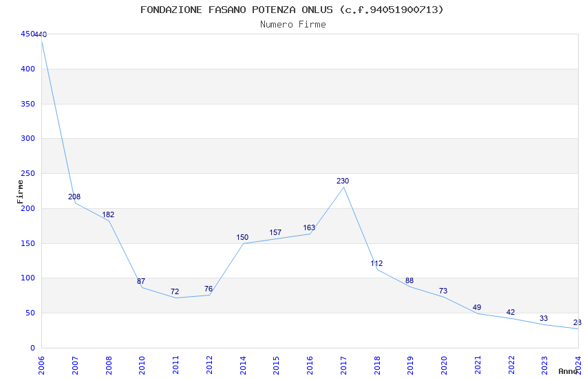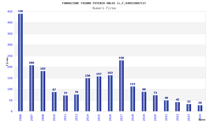 | Anno | Firme | Importi | Media | Naz. | Reg. | Prov. | Comu. |