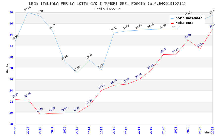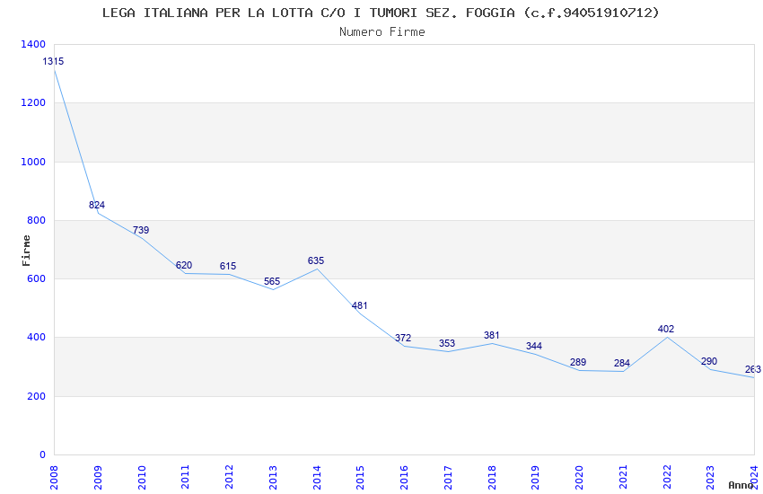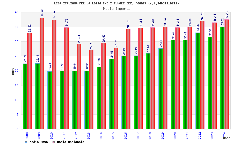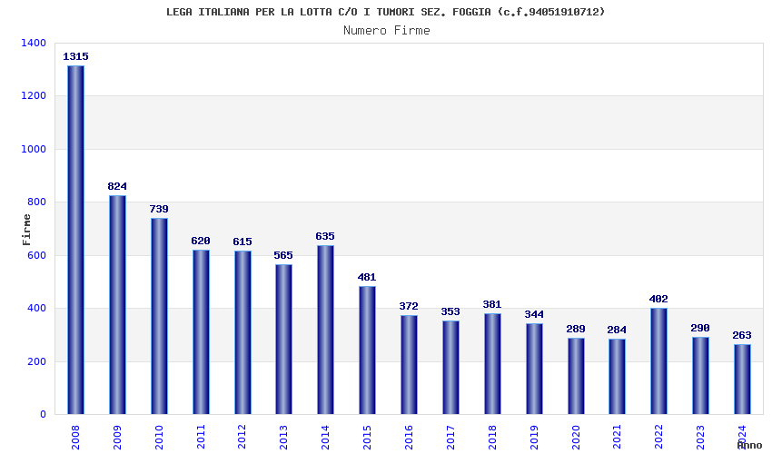 | Anno | Firme | Importi | Media | Naz. | Reg. | Prov. | Comu. |