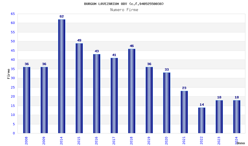 | 2014 | 62 | 1.430,79 | 23,08 | 26.256 | 2.176 | 187 | 2 |
