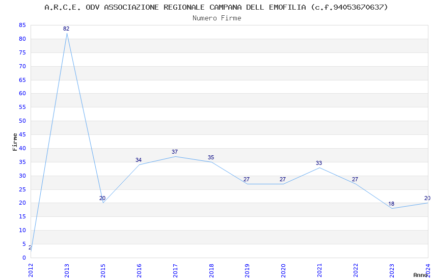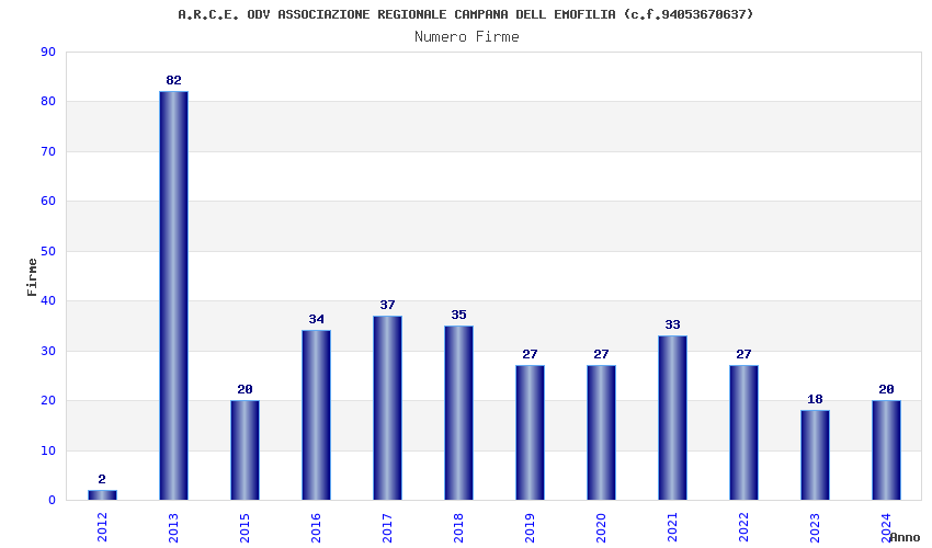 | Anno | Firme | Importi | Media | Naz. | Reg. | Prov. | Comu. |