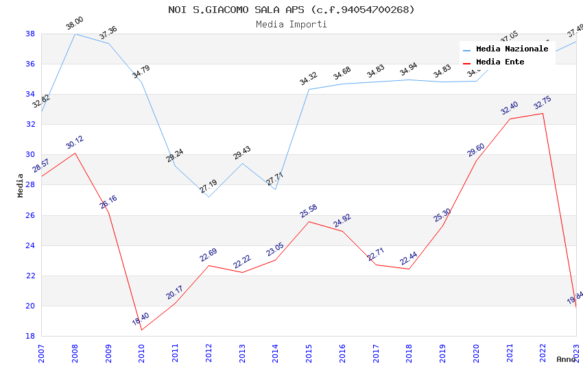 | Anno | Firme | Importi | Media | Naz. | Reg. | Prov. | Comu. |