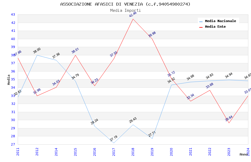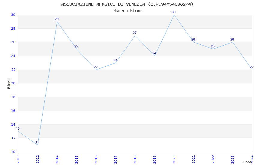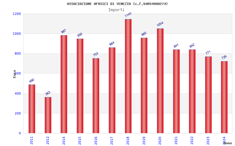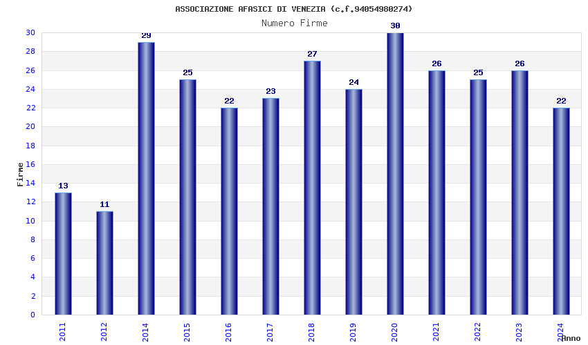 | Anno | Firme | Importi | Media | Naz. | Reg. | Prov. | Comu. |