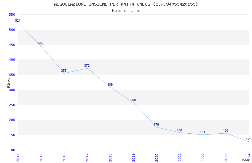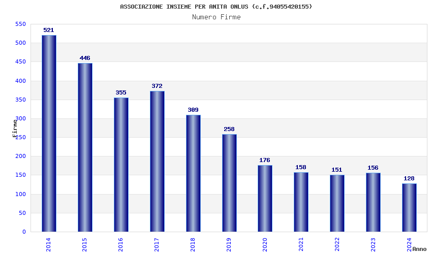 | Anno | Firme | Importi | Media | Naz. | Reg. | Prov. | Comu. |
