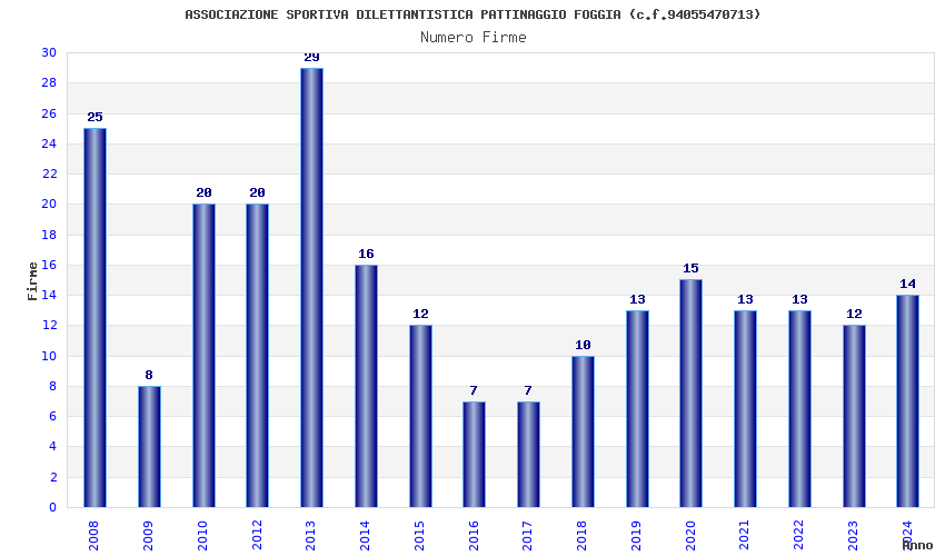 | Anno | Firme | Importi | Media | Naz. | Reg. | Prov. | Comu. |