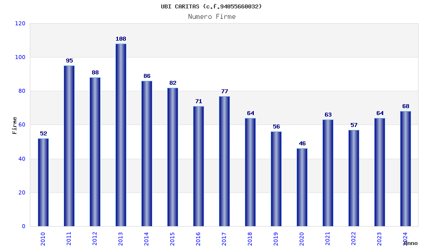 | Anno | Firme | Importi | Media | Naz. | Reg. | Prov. | Comu. |