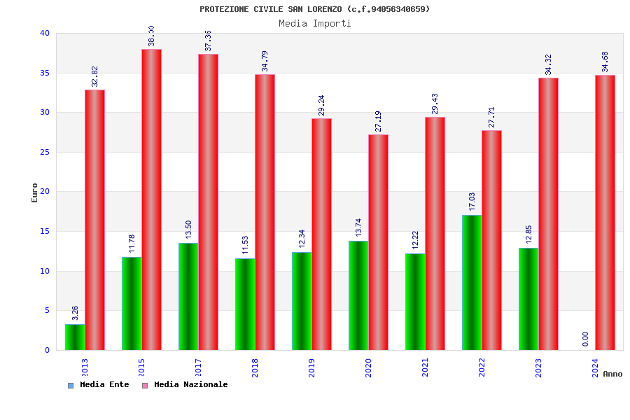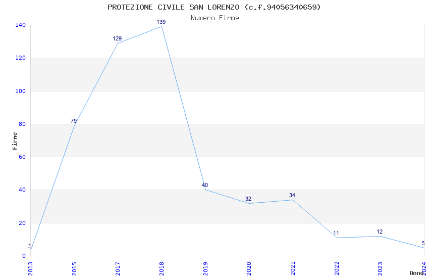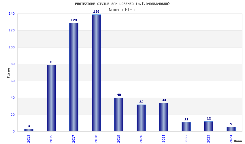 | Anno | Firme | Importi | Media | Naz. | Reg. | Prov. | Comu. |