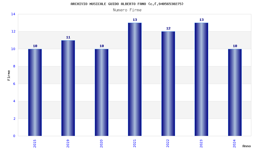 | Anno | Firme | Importi | Media | Naz. | Reg. | Prov. | Comu. |