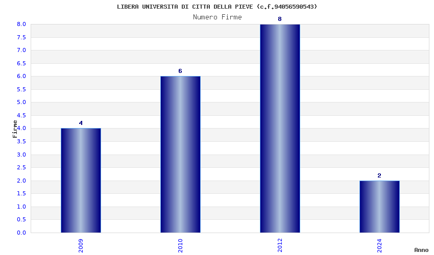 | Anno | Firme | Importi | Media | Naz. | Reg. | Prov. | Comu. |
