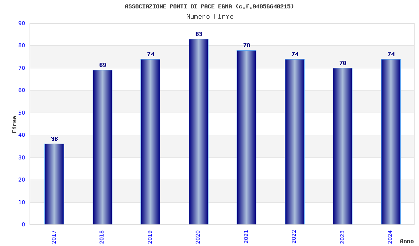| Anno | Firme | Importi | Media | Naz. | Reg. | Prov. | Comu. |