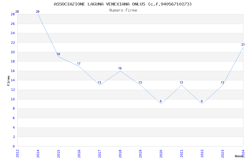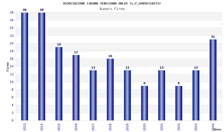 | Anno | Firme | Importi | Media | Naz. | Reg. | Prov. | Comu. |