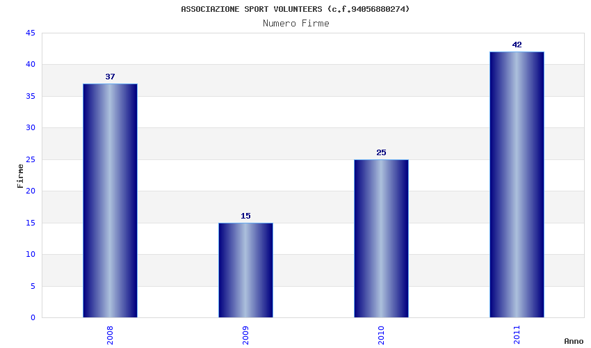 | Anno | Firme | Importi | Media | Naz. | Reg. | Prov. | Comu. |