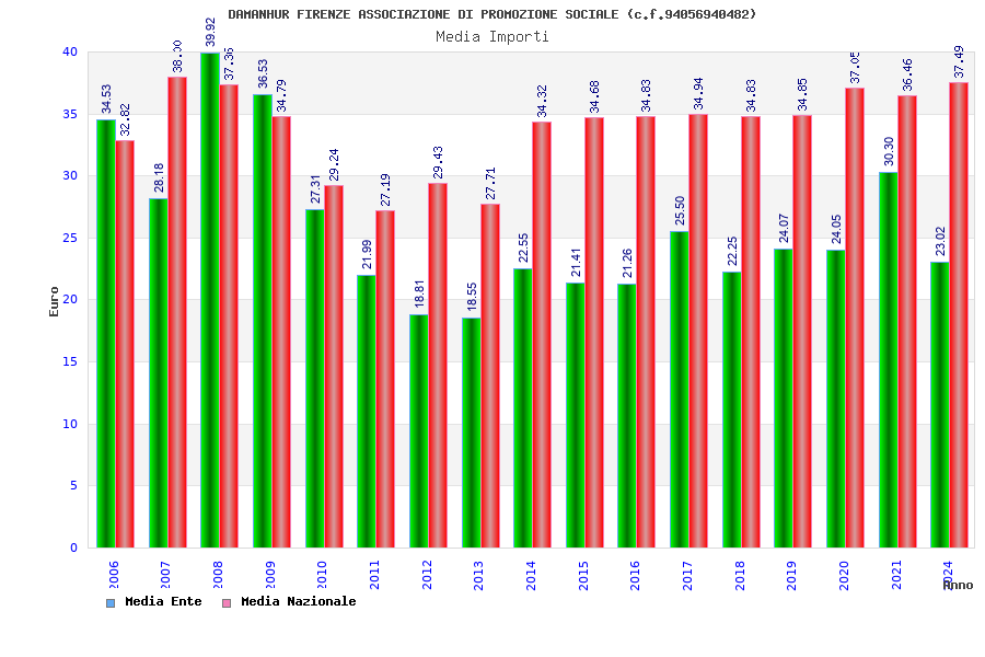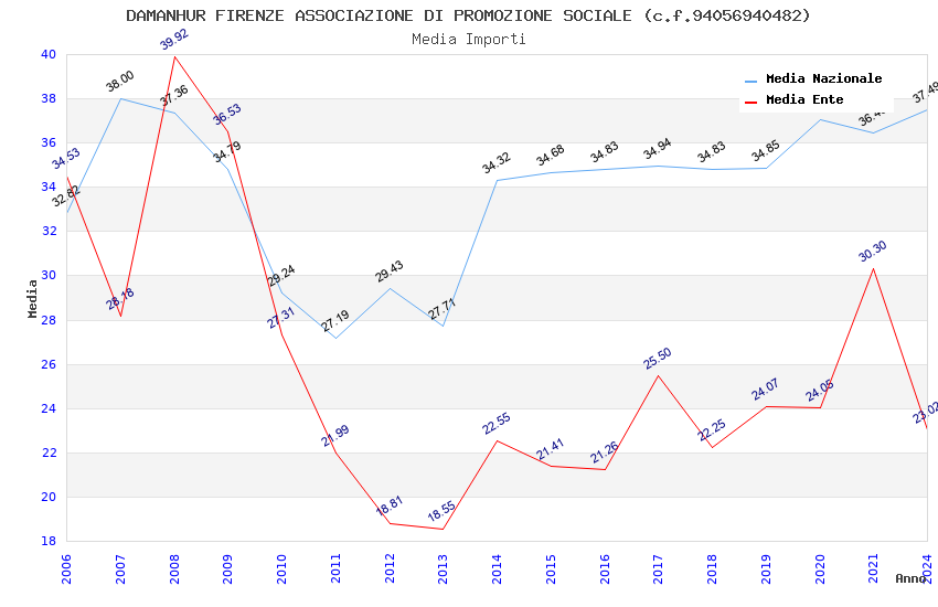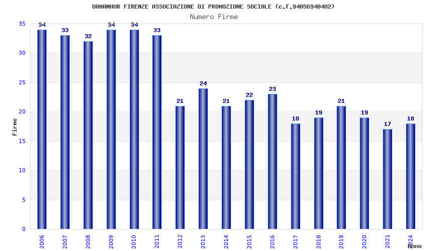 | Anno | Firme | Importi | Media | Naz. | Reg. | Prov. | Comu. |