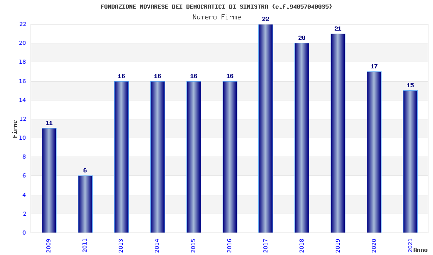 | Anno | Firme | Importi | Media | Naz. | Reg. | Prov. | Comu. |